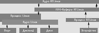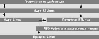 | Рис. 1. Механизм работы RTLinux — Linux-расширения жесткого реального времени |
