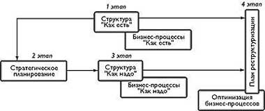 В компании должен быть также механизм реструктуризации - механизм принятия обоснованных решений по изменению структуры в связи с требованием текущей обстановки. В общем виде этот механизм представлен на рис. 1.