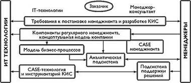 | Разработка КИС и системы поддержки решений. Консультирование Заказчика по вопросам | Менеджмент-консультанты, ИT-консультанты, Заказчик менеджмента и КИС. |