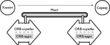 Приведенные схемы построения приложений позволяют достичь интероперабельности объектов внутри распределенной среды, базирующейся на одном или нескольких идентичных ORB, чего, однако, еще явно не достаточно при построении масштабных распределенных информационных систем. Действительно, использование того или иного объекта в приложении подразумевает, что ORB имеет соответствующий объектный адаптер. Тем самым, число объектов, которые потенциально могли бы быть использованы при создании системы, ограничивается теми объектами, для которых существуют объектные адаптеры. В этой связи, логичным представляется наличие некоторого количества замкнутых систем (доменов, в терминологии CORBA), каждая из которых базируется на собственном ORB, а также наличие связи между различными ORB (мостов, в терминологии CORBA) для предоставления клиентам одного ORB к методам объектов другого.