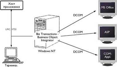 При использовании BizTransactions BOI существующие приложения UTM, BS2000/OSD, MVS выступают в качестве базиса для формирования бизнес-объектов, основанных на стандарте DCOM. Бизнес-объекты, построенные с применением сервисов хост-приложений, могут быть объединены с дополнительными DCOM совместимыми объектами для создания интегрированного приложения, обеспечивающего полный доступ к серверным приложениям из Windows. Таким образом, интегратор бизнес-объектов BOI - это логическое развитие средств интегрирования ComTransactions.
