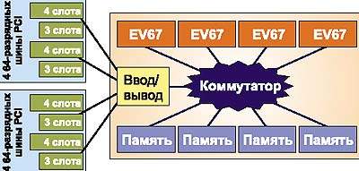 Используя компьютеры серии GS, ничего подобного пользователям делать не придется — приложения, разработанные для традиционной архитектуры SMP (UMA), будут прекрасно работать на данной платформе. Дело в том, что для реализации NUMA компания Compaq использовала коммутаторы, работающие в неблокирующем режиме, что и стало отличным решением проблемы задержек процессоров. Инженеры Compaq разрабатывают коммутаторы в течение десятилетия; компания является лидером по производству высокоскоростных коммутаторов.