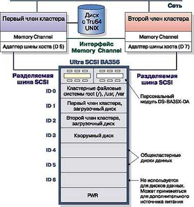Подчеркнем, что даже при зеркалировании общекластерной операционной системы root и дисков загрузки членов кластера единая разделяемая шина SCSI остается критически уязвимым местом.