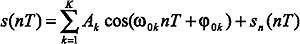 где Ak- значение амплитуды k-ой узкополосной составляющей исходного аудиосигнала, а sn(nT) - функция, характеризующая шум или ошибку представления. Число значимых узкополосных составляющих исходного фонообъекта K в (1),(2) и (3) выбирается в зависимости от условий каждой конкретной решаемой задачи.