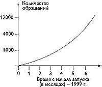 На рис.4 приведена статистика роста числа обращений к системе с начала ее функционирования. Кроме того, были исследованы характеристики поисковой системы: время реакции, полнота и точность поиска (релевантность найденных документов к запросу). Для определения этих характеристик были взяты средние значения результатов выполнения 20 разных тестовых запросов без учета задержки в каналах связи. Во время проведения теста база данных поисковой системы содержала свыше миллиона Web-страниц. В результате проведенных опытов был построен график зависимости времени обработки запроса пользователей от количества документов в базе поисковой системы (рис.5).