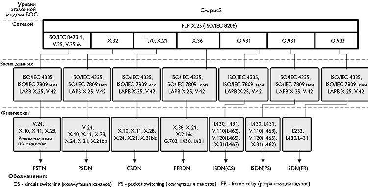 Рис. 5. Профиль взаимосвязи протоколов ВОС и различных сетевых технологий
