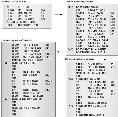 Чтобы оптимизировать последовательность подряд идущих команд доступа к памяти. Оптимизатор заменяет пару команд addp4/st4 (команды C1 и C2 в сгенерированном динкоде) на одну команду st4 (команда c1 в оптимизированном динкоде), которая одновременно модифицирует базу. Оптимизация сокращает общее время выполнения с шести циклов до пяти и уменьшает счетчик команд с 24 до 18