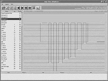 proxy(19603(phrelay))Для упрощения анализа журналов событий микроядра компанией QSSL был дополнительно разработан пакет Deja-View, работающий в графической оболочке Photon и представляющий события микроядра из заданного журнала в виде временных диаграмм (рис. 3).