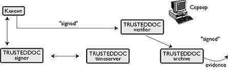 Система TrustedDoc предназначена для создания электронных документов, полностью заслуживающих доверия, и использует для этого ведущие технологии цифровой подписи. TrustedDoc обеспечивает идентификацию лица, подписывающего документ, аутентификацию подписанных данных и указание времени подписи (TimeStamp). Встроенный компонент SecureArchive гарантирует оценку достоверности документа спустя годы (рис. 1).