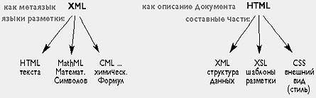 Первая состоит в том, что семантическая ограниченность языка разметки гипертекста HTML не позволяла разработчику Web-приложений описывать специфичную информацию, например, химические или математические формулы. Возникла практическая потребность в других языках разметки, структурно аналогичных HTML, но с другой семантикой. В результате стараний Консорциума W3C был создан метаязык XML, на основе которого заинтересованные разработчики создали и создают специфичные дочерние языки разметки - CML, MathML и уже десятки других. С учетом небольшой синтаксической доработки, HTML также является дочерним языком XML.