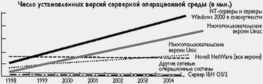 Согласно оценкам IDC, операционная система Novell NetWare остается одной из ведущих платформ, используемых в качестве операционной среды серверов, но со временем уступит свои позиции Windows NT, Windows 2000 и Linux.
