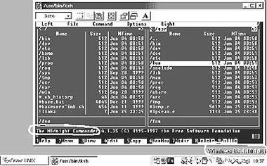На первый взгляд, рис. 1 очень похож на знаменитый «Norton Commander», но, присмотревшись, можно заметить непривычный символ - разделитель каталогов. Да, это «Midnight Commander», «Нортон» для UNIX, да и названия каталогов характерными для Windows никак не назовешь.