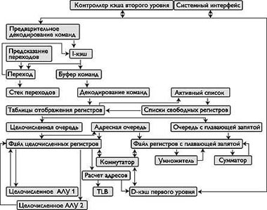 | Рис. 1. Упрощенная схема микроархитектуры R12000 |