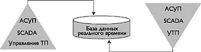 - использование только реляционных баз данных, в таблицы которых подсистема АСУТП по SQL-запросам записывает технологические данные, которые в дальнейшем могут быть использованы обеими подсистемами;
