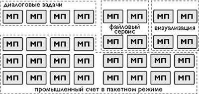 Однако в классе больших многопроцессорных систем прогресс пошел несколько в ином направлении - к организации разделов (или доменов). Раздел - это часть аппаратуры большого компьютера, которая сама по себе является компьютером, работающим под управлением собственной ОС. При этом желательно, чтобы у разделов вообще не было бы общей аппаратуры. Концепции виртуальных машин и разделов могут использоваться совместно: система виртуальных машин может работать в любом разделе.