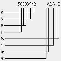 Перевод шестнадцатеричных значений в символьное представление сопряжен с определенными неудобствами, но использование спецификатора «%s» приведет не к выводу строки в удобочитаемом виде, а к аварийному завершению приложения. Такое поведение объясняется тем, что, встретив спецификатор «%s», функция printf ожидает увидеть указатель на строку, но не саму строку. В результате происходит обращение по адресу 0x5038384B («K98PN» в символьном представлении), который находится вне пределов досягаемости программы, что и вызывает исключение.