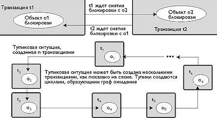Менее очевиден, однако, более эффективен другой выход — добиться того, чтобы все транзакции осуществляли блокировки в одном порядке. Тупиковые ситуации возникают в том случае, когда одна транзакция блокирует объект А и требует доступа к объекту В, в то время, как другая транзакция блокирует объект В и обращается к объекту А. Если написать программу так, чтобы транзакции обращались к объектам и осуществляли блокировки в одном и том же порядке, подобные тупики станут невозможны.