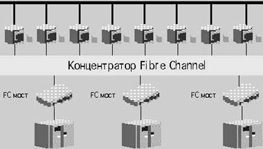 Если массивы данных таковы, что их регулярное резервирование поглощает значительную долю полезного времени работы серверов и создает чрезмерную нагрузку на сеть, это сигнал к тому, что пора всерьез рассмотреть вариант создания отдельной сети для хранения корпоративных данных (SAN — storage area 77777 network). SAN представляет собой сеть выделенных высокопроизводительных соединений для обмена данными между серверами и устройствами внешней памяти. Такая сеть консолидирует все ресурсы внешней памяти, включая дисковые массивы для оперативного хранения данных и устройства для резервирования/архивирования информации, и позволяет в значительной степени освободить корпоративные серверы от задач защиты данных, сконцентрировав их процессорные мощности на выполнении бизнес-приложений.