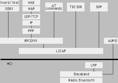 При работе устройств Bluetooth используются специфические протоколы и общие, используемые в различных телекоммуникационных системах, которые образуют стек протоколов