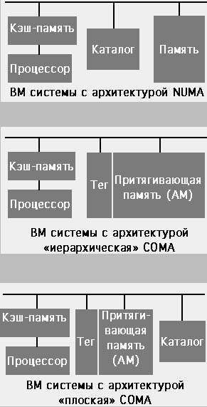 - системы с архитектурой СОМА (Cache-Only Memory Architecture);