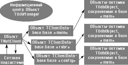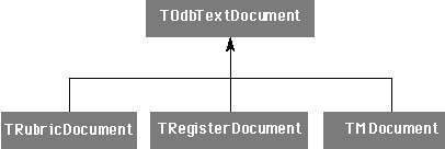 Класс TodbTextDocument — потомок TodbObject, соответственно и остальные классы также являются его потомками. Назначение класса TRegisterDocument — хранить описание типа документа, формируемое пользователем. Назначение класса TRubricDocument — хранить документ типа «рубрика» для того, чтобы создать древовидную структуру рубрикатора, хранящего ссылки на все документы. Назначение класса TMDocument — хранить документы, имеющие тип, определенный пользователем. Информационно-поисковая система реализует возможность использования одним клиентом нескольких баз сервера.