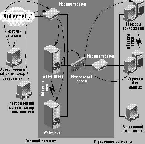 Рис. 1. Атаки на серверы во внутренних сегментах сети от имени скомпроментированного Web-сервера
