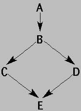Принудительный контроль доступа основан на присвоении каждому файлу метки, определяющей его важность. Такая же метка присваивается и каждому процессу. Очень важным является то, что метка присваивается каждому процессу и каждому файлу. Если метка не присваивается явно, должна быть присвоена метка по умолчанию. Между метками определено отношение частичной упорядоченности, так называемое доминирование. Так пусть между метками A, B, C, D и E определены отношения как на рис. 1. Тогда мы можем говорить, что метка A доминирует над меткой A, B, C, D, E, метка В — над метками B, C, D и E, метка C и метка D доминируют над меткой E, а вот про соотношение между C и D мы сказать ничего не можем, поэтому такое отношение и называется частичным упорядочиванием. По определению, метка доминирует над самой собой. Метки и отношения между ними определяются на стадии разработки системы в зависимости от целей, стоящих перед разработчиками. Так для госучреждений, например, могут быть определены метки типа «не секретно», «конфиденциально», «секретно», «совершенно секретно» и «особой важности». Между этими метками определено очевидное линейное отношение доминирования. Для примера на рис. 1 можно определить, что метку A имеют файлы директора банка, B — его заместителя, а C и D — файлы менеджеров, которые занимаются взаимодействием с разными клиентами. Меткой E помечаются файлы, содержащие информацию, с которой можно знакомить всех, например, системные файлы, файлы с рекламой и так далее.
