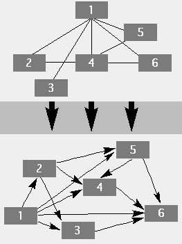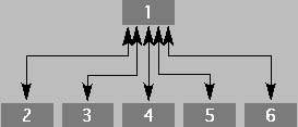 | Рис. 1. Система управления Существующая схема организации информационных потоков в системе управления: 1 - управление организацией; 2-6 - подразделения организации |