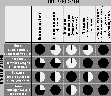| Рис. 3. Требования учета и управления в зависимости от величины и способа организации предприятия |