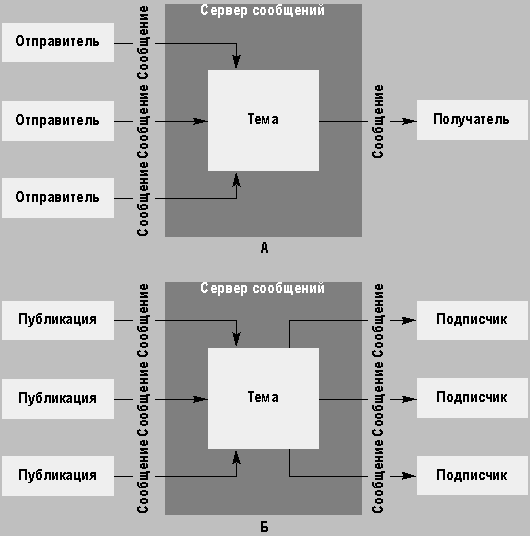 Дисциплины обмена сообщениями А) точка —точка; Б) публикация и подписка