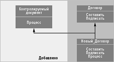 Рассмотрим типичный сценарий использования М2. Предположим, в системе управления договорами предусмотрен объект «Договор», внедрена система электронного документооборота и требуется контролировать процесс согласования и выполнения договоров. Для этого объекту «Договор» добавляют еще одного «родителя» — «Контролируемый документ»; общие для двух объектов атрибуты отображаются из объекта «Договор» в нового родителя; типовой рабочий процесс для данного типа документов копируется, при необходимости в него вносятся изменения.