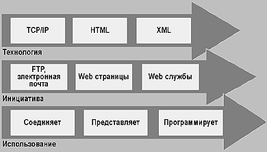 Следующий шаг — появление технологии, связывающей между собой информационные системы посредством Web. И сейчас, с рождением Web-служб, происходит переход от Web как средства представления информации к Web как среде программирования.