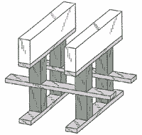 | Рис. 3. Пример трехмерной интегральной схемы. В вертикальном «срезе» полупроводниковой микросхемы, при проектировании которой задействовано третье измерение, можно обнаружить изолятор, проводник или полупроводник. Подобные архитектуры определят направление развитие в эпоху трехмерного проектирования микроэлектронных компонентов (темно-серым обозначены вычислительные элементы, светло-серым цветом — проводники) |