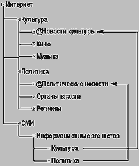 Другими словами, все объекты, принадлежащие, например, разделу «Интернет/СМИ/Информационные агентства/Политика», могут быть отнесены в виртуальный подраздел «Политические новости» раздела «Интернет/Политика».
