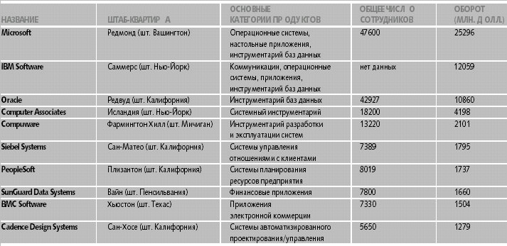 Таблица 1. 10 ведущих программистских компаний США в 2001 году