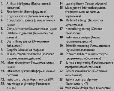 | Рис. 2. Список основных направлений области ИТ (Computing) |
