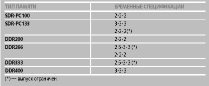 Временные спецификации модулей оперативной памяти
