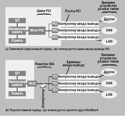 Сравнение архитектур сервера с PCI и IfiniBand. Так мыслилось использование InfiniBand на начальном этапе