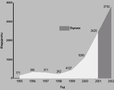 | Рис. 1. Количество инцидентов с 1988-го по 2001 год |