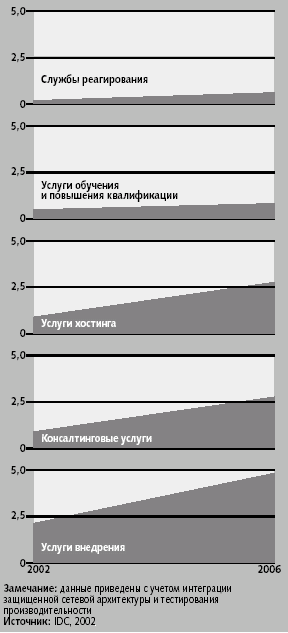 | Расходы на различные виды служб обеспечения безопасности американских компаний должны существенно возрасти (прогнозируемые показатели, в млрд. долл.) |