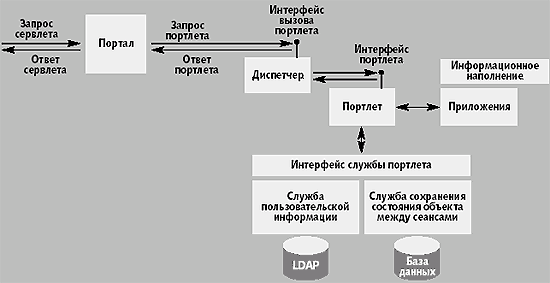 Такой сервер, как правило, преобразует запросы сервлета в множество запросов портлетов и распределяет их между соответствующими портлетами