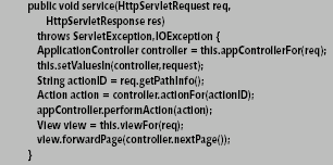 В качестве альтернативного решения можно представить действие просто как индикатор выполняемого метода контроллера приложения. Это очень легко сделать в Smalltalk. Благодаря сервлету Smalltalk и оболочке JSP [7] мы можем просто установить действие
