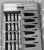 Необходимо сделать еще одно дополнительное замечание, касающееся архитектуры и конфигурации серверов. Кроме плат I/O, имеются еще платы MaxCPU — с тем же типом разъема Slot1, что и платы I/O. Платы MaxCPU содержат по два процессора и могут использоваться в наборах плат вместо плат I/O. В результате общее число процессоров в системе может достигать 106. Максимальная емкость оперативной памяти Sun Fire 15K — 576 Гбайт, емкость дискового пространства — до 250 Тбайт.