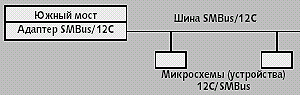 Поддержка интерфейса I2C/SMBus реализуется благодаря наличию встроенных адаптеров в большинстве современных наборов микросхем (рис. 1). Такую поддержку предлагают, например, южный мост Intel PIIX4/PIIX4E, наборы микросхем i810/815/840, AMD 756/766/768, наборы микросхем ServerWorks OSB4 и CSB5, наборы микросхем VIA Appolo, nVidia nForce и даже набор микросхем Compaq/DEC Tsunami 21272/Typhoon 21274 (в частности, в платах U2000 на базе микропроцессоров Alpha/21264A; напомним, что Linux работает и на этой платформе).