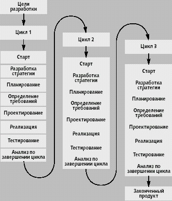 После изучения PSP студентам предлагается учебный курс по разработке программных проектов с помощью TSPi, «академической» версии Team Software Process, который применяется отраслевыми группами разработчиков программного обеспечения. Материалы по TSPi включают в себя учебник, руководство преподавателя, вспомогательный инструментарий и набор сценариев, форм, стандартов и методов, необходимых для разработки качественных программных продуктов [4]. В соответствии с TSPi проект по созданию программного обеспечения разделяется на циклы разработки, и по окончанию каждого из них группа предоставляет часть готового продукта. На рис. 1 показана циклическая структура процессов TSPi. Студенты выполняют два или три цикла за один семестр. На последнем цикле студенты интегрируют и тестируют законченную систему.