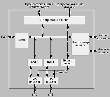 - Модуль слежения за транзакциями при локальном доступе (Local Access Transaction Tracker, LATT), который контролирует запросы к процессору. Он преобразовывает запросы к процессору в запросы к контроллеру памяти или SP и возвращает ответы процессорам.