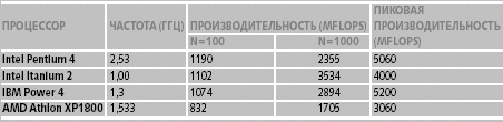 Таблица 2. Производительность некоторых микропроцессоров на тестах Linpack