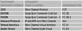 | Таблица. Стандарты для инкапсуляции ULP в FC-пакеты |
