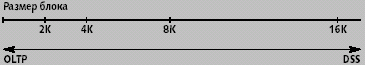 Размер блока оказывает большое влияние на производительность базы данных — при больших размерах скорость операций чтения/записи растет (особенно это характерно для полных просмотров таблиц и операций интенсивной загрузки данных), однако возрастают накладные расходы на хранение (база увеличивается) и снижается эффективность индексных просмотров. Меньший размер блока позволяет более экономно расходовать память, но вместе с тем относительно дорог. Длинные блоки (16, 32 или 64 Кбайт) лучше использовать для больших объектов данных: полнотекстовые фрагменты, мультимедиа-объекты, длинные строки и т.п. Короткие блоки (2 или 4 Кбайт) лучше подходят для значений числовых типов, недлинных строк, значений даты и времени. Следует также учитывать размер блока ОС, он должен быть кратен размеру блока базы данных. Малый размер блока лучше подходит для систем оперативной обработки транзакций, потому что, если сервер блокирует данные на уровне блоков, то это позволяет большему числу пользователей работать, не мешая друг другу (рис. 1). В системах поддержки принятия решений, для которых более критичным является не общая пропускная способность (количество транзакций в единицу времени), а среднее время отклика (response time), больший блок предпочтительнее.