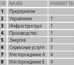 | Таблица 1. Представление иерархий с помощью рекурсивной связи |